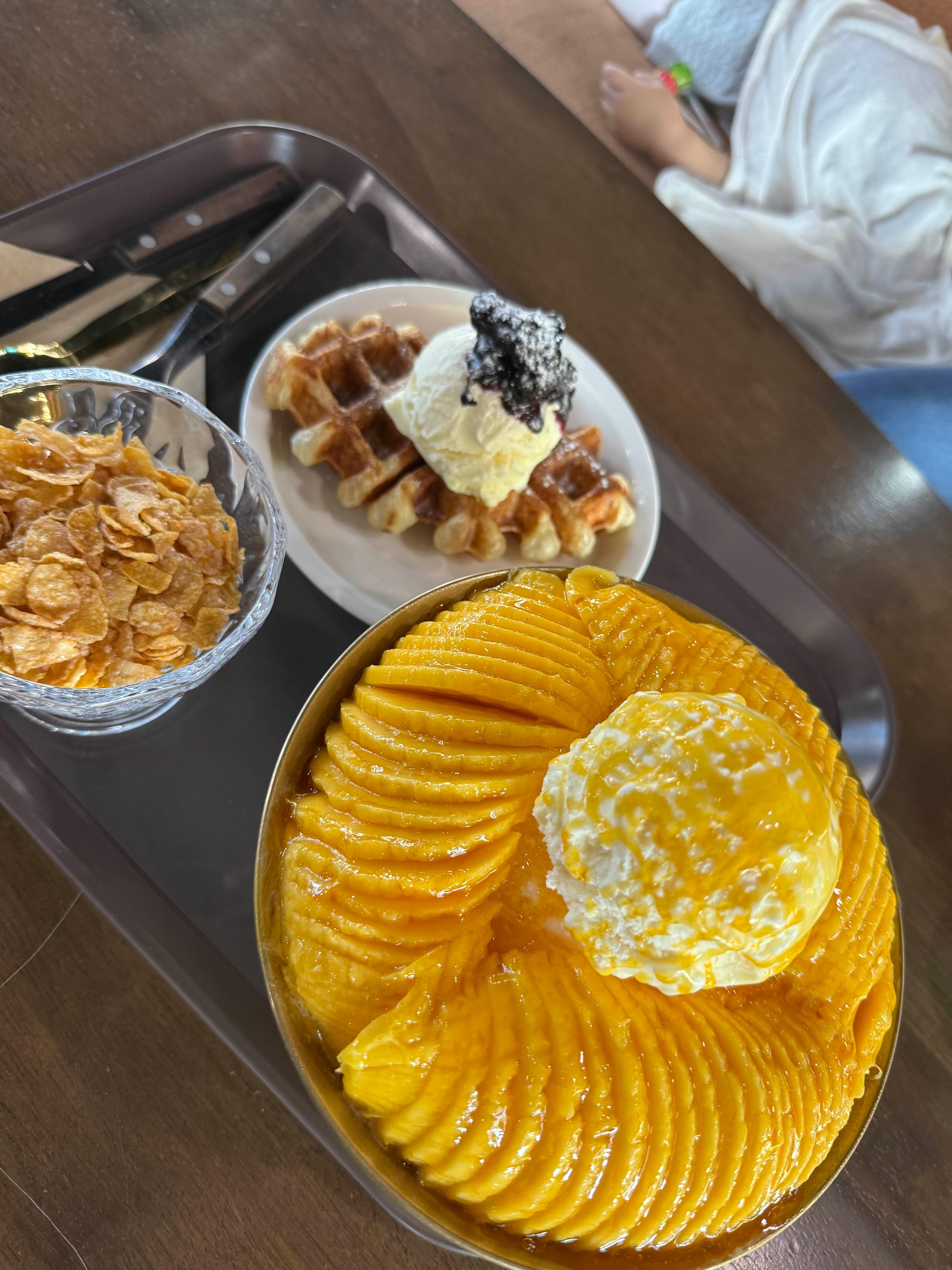 지금껏 먹어본 빙수중에서 가장 맛있게 먹은것으로 하겠습니다. 가격대가 있기는 하지만 망고빙수는 정말 맛있습니다, 휴스파와 거리가 그렇게 멀지는 않아서, 가기에는 편합니다. " 타이틀도 호텔신라 못지않은 망고빙수",,, 라고 적혀있는데, 정말 먹어보면 왜그런지는 알수 있습니다. 다른 딸기빙수는 먹어보지는 않았지만, 왠지 알것 같습니다. 아이도 좋아하고, 직원분들도 친절하니 꼭 주변에 커피와 빙수를 먹는다고 하면 추천드립니다. 늦게가면,, 품절이 됩니다. (딸기빙수가 품절이었습니다.) 그밖에 믹스베리 와플과, 블루베리 크로플도 있으니, 출출하시면 드시는것도 나쁘지 않습니다. 고창여행을 가게되면 다시 가고싶은 가게 입니다.