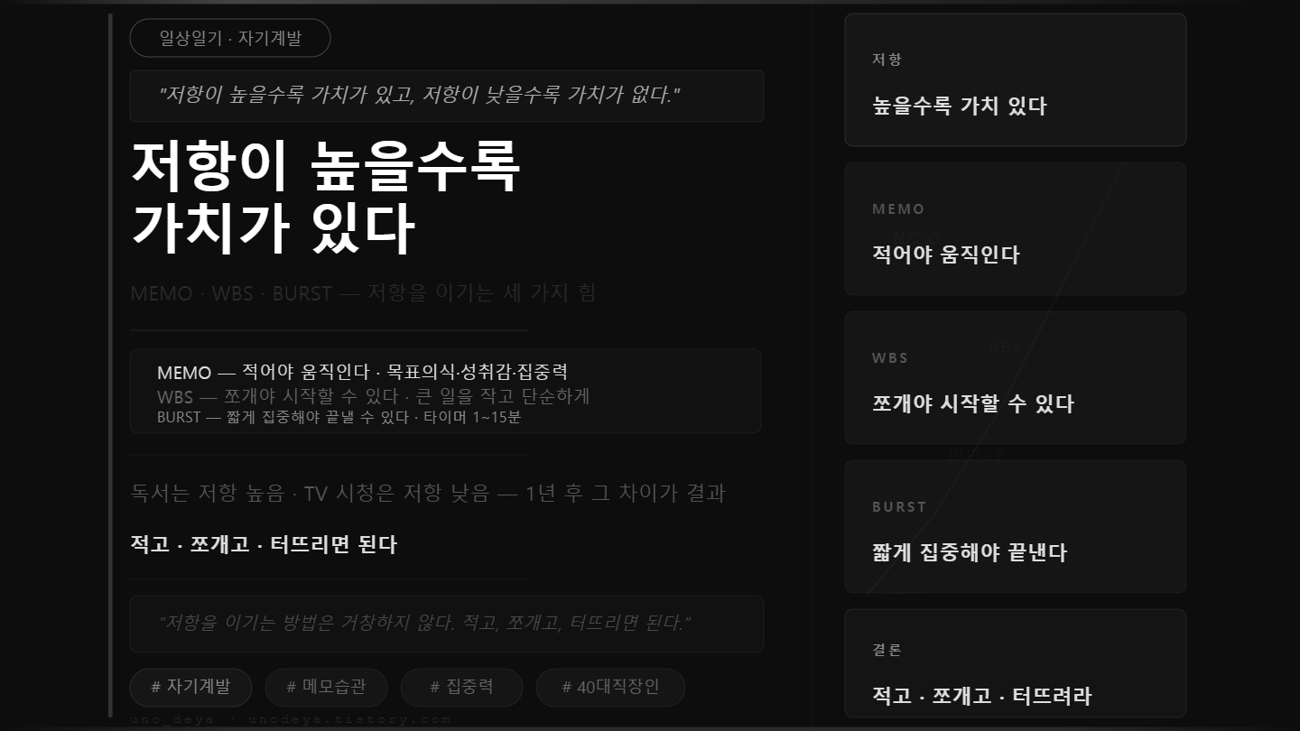 독서는 저항이 높다. TV 보는 건 저항이 낮다. 그 차이가 결국 1년 후, 5년 후의 차이를 만든다.