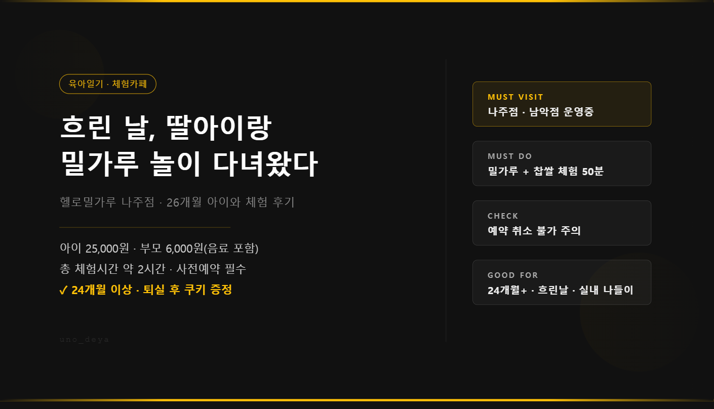 예전에 딸기 체험을 데려갔을 때 너무 행복해하던 얼굴이 생각났다. 양 볼에 딸기 즙이 묻은 채로 눈이 초롱초롱하던 그 표정. 그 기억 하나로 검색창을 열었고, 찾아낸 곳이 헬로밀가루 나주점이었다.