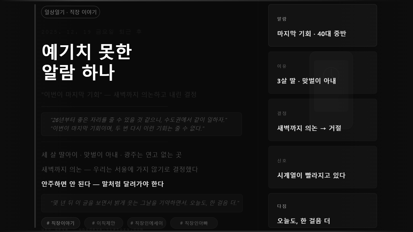 2025년 12월 19일 금요일, 퇴근 후 핸드폰 알람이 울렸다.