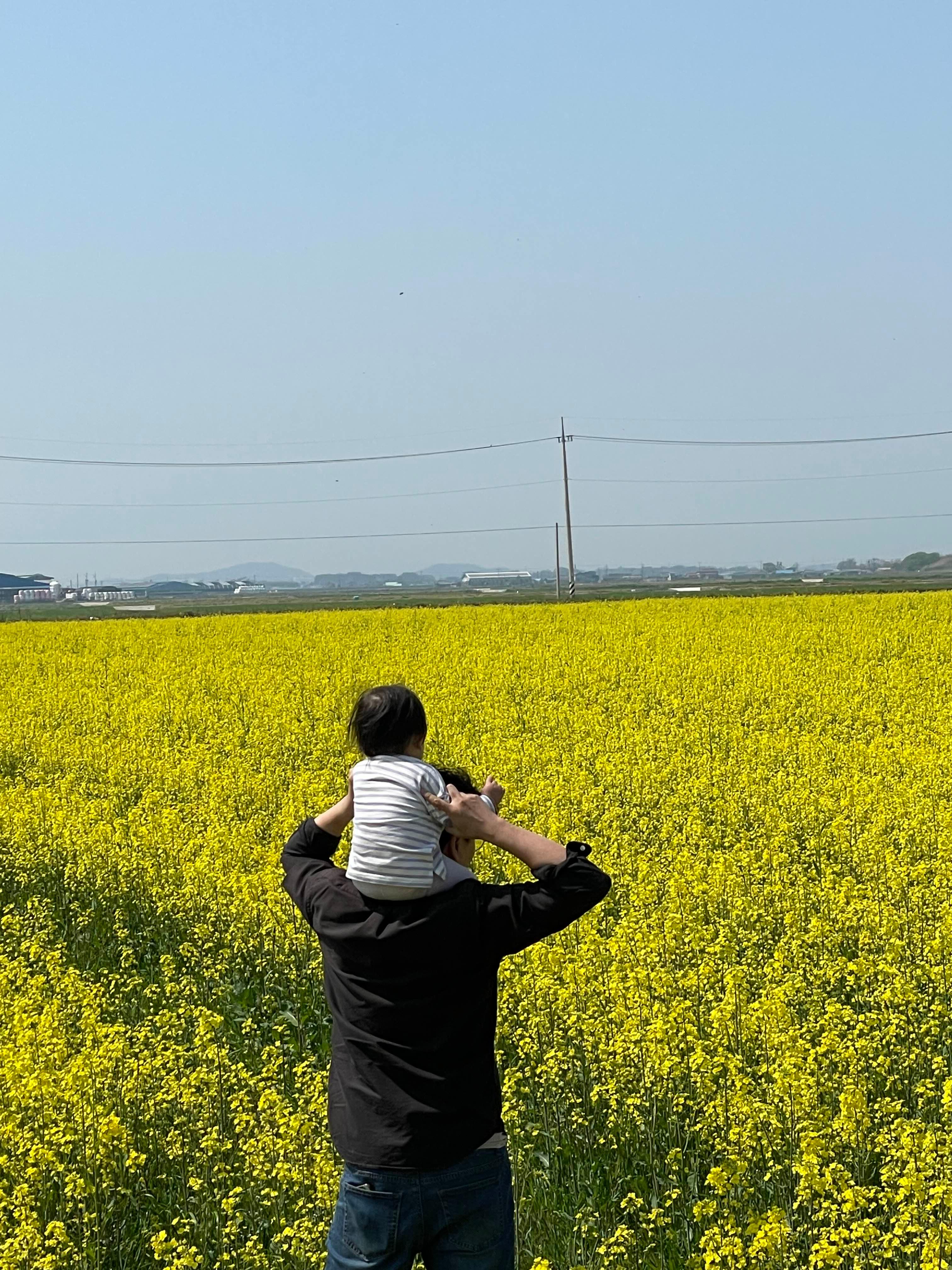 아직 많은 사람들에게 알려지지 않은 곳이라 여유롭게 유채꽃을 볼 수 있는 나만의 장소다. 정읍에 출장을 가다가 지나가는 길에 우연히 발견했다. 도로 주변이 온통 노란 유채꽃으로 뒤덮여 있어서, 그 주 주말에 바로 아이와 함께 찾아갔다.
